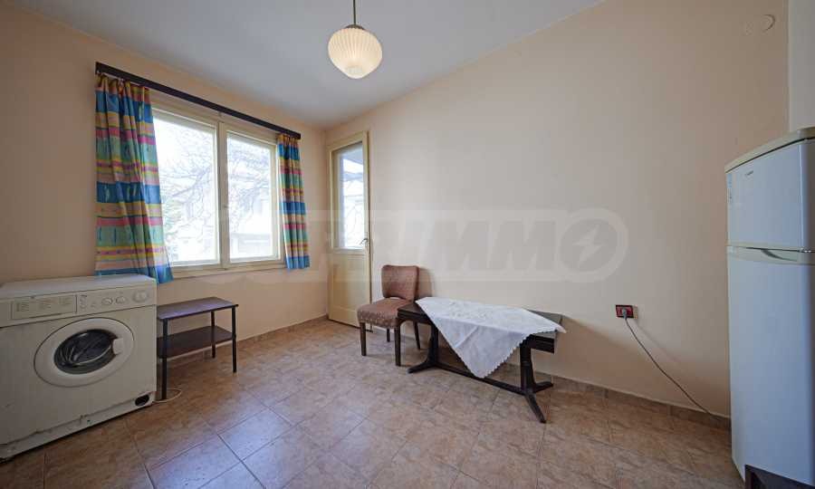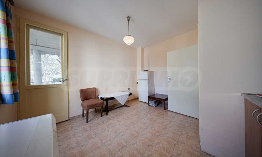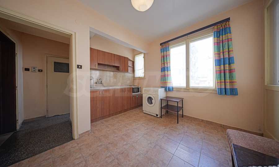 Апартаментът заема втори етаж от общо четири в сграда с добре поддържани общи части.Разполага с мазе 6 кв.м . Изложението е изток/юг/север. Нуждае се от ремонт .