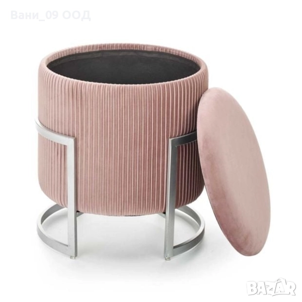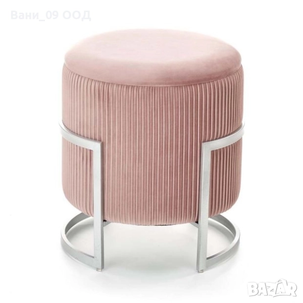 Внесете елегантен акцент и допълнително удобство в интериора с тази красива табуретка, съчетаваща стил, комфорт и практична функционалност. Меката тапицерия в нежен розов нюанс е изработена от висококачествено кадифе, което придава усещане за уют на всяко пространство. Не просто мебел, а изящен детайл с фина ретро естетика.