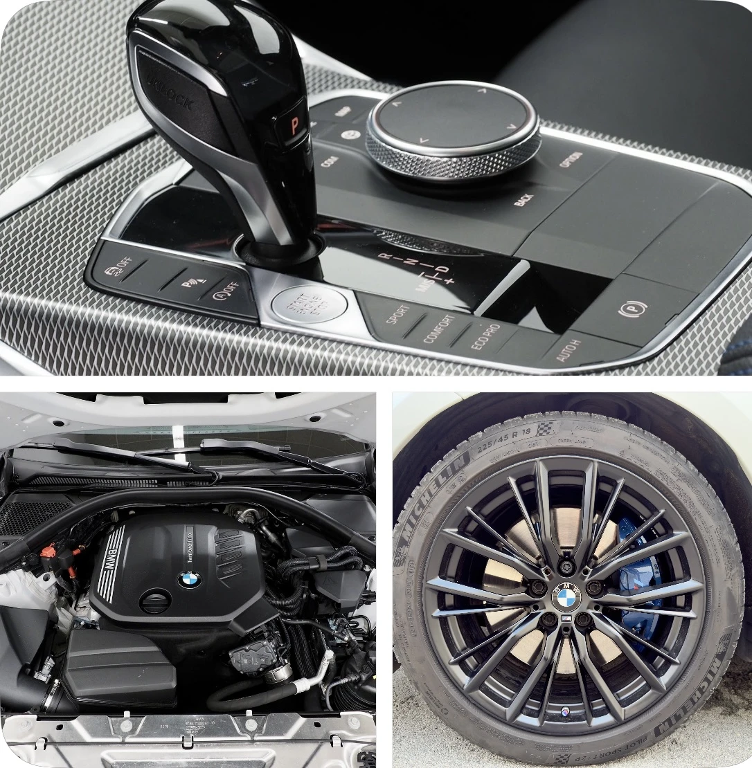 BMW в Германия Пълна сервизна история само в БМВ оторизиран сервиз Напълно обслужен Предпазен е почти изцяло с PPF фолио Регистриран всичко платено. Каско, Винетка, ГО Гаражен автомобил Един предишен собственик Оборудване на автомобила: С704 M Sports окачване С710 M кожен волан С715 M аеродинамичен пакет S7LF Модел M Sport S7M9 M Shadow Line с разширен обхват S7R7 Иновационен пакет Комфорт и интериорно оборудване С403 Стъклен покрив, електрически С420 Слънцезащитно остъкляване С428 Предупредителен триъгълник и аптечка С430 Вътрешно/външно огледало с автоматично затъмняване С431 Вътрешно огледало с автоматично затъмняване С465 Система за товарене през ролките С481 Спортна седалка С488 Лумбална опора, водач и пътник С493 Пакет с багажно отделение С494 Отопление на седалките за водача/пътника S4AW Инструментален панел Sensatec С4КК Междинни лайсни, алуминиев тетрагон S4UR Амбиентно вътрешно осветление Мултимедия С610 Head-up дисплей С676 HiFi система от високоговорители S6AE Телеуслуги S6AF Задължително спешно повикване С6АК Услуги за свързани устройства S6C4 Професионален свързан пакет С6У3 Работна зона BMW Live Professional Асистент за водача и осветление С534 Автоматичен климатик С544 Круиз контрол с функция на спиране С548 Километър скоростомер S5A1 LED фарове за мъгла S5AC Асистент за дълги светлини S5AQ Активна охрана плюс S5AS Асистент за шофиране S5AZ Лазерна светлина на BMW S5DA Деактивиране на пътническата въздушна възглавница S5DC Сгъваеми подглавници на задните седалки S5DM Система за асистиране при паркиране Колела и задвижване С205 Автоматична трансмисия С230 Допълнителен пакет, специфичен за ЕС С248 Отопление на волана С258 Гуми със свойства runflat S2NH M Sport спирачки S2PA Заключващ болт на колелото S2VB Дисплей за налягане в гумите S2VL Променливо спортно кормилно управление Околна среда и безопасност С302 Алармена система С316 автоматичен механизъм на капака на багажника С320 Изтрито, моделно надписване С322 Система за комфортен достъп С3КА Акустично комфортно остъкляване С801 Немска версия С851 Езикова версия Немски С879 Бордова литература, немски език S8KB Интервал на смяна на маслото 24 месеца / 25 000 км S8R9 Хладилен агент R1234yf S8TF Активна защита на пешеходците С760 Shadow line с висок гланц С775 Таван антрацит Друго оборудване S1AG По-голям резервоар за гориво S1CB CO2 оборудване S9AA Защита на външната кожа S9D6 Пакет за обучение на водачи SA090 90 Ah AGM батерия SA96 минерално-бял металик SFRFK RKF HO светкавица SMANL Кожа Vernasca с син шев и черен цвят