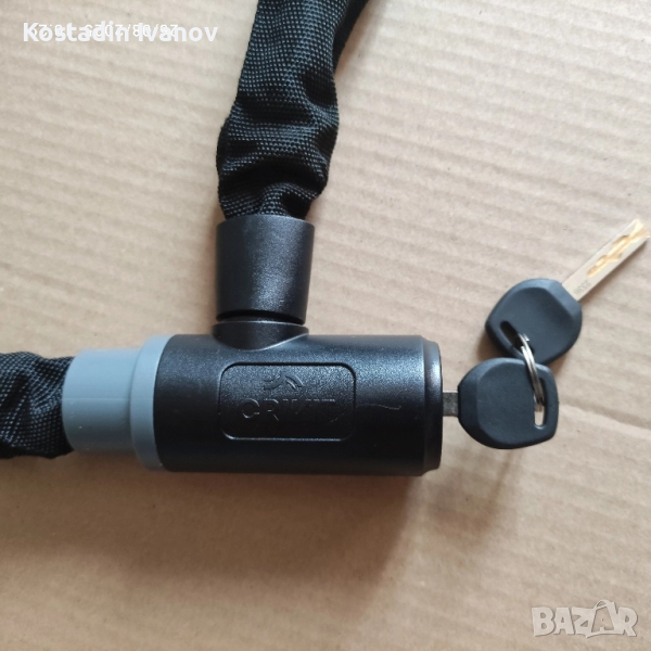 Здрав и масивен катинар за велосипеди, тротинетки от, мотопеди и други. Направен от верига с плетена обвивка. Дължина-110см.Тежина-1,5 килограма.