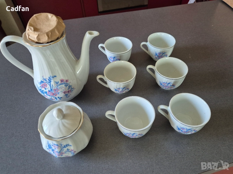 Цвят бяло с мотив цветя синя незабравка, материал порцелан.