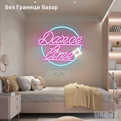 LED неон надпис Dance Time в яркорозово – силно визуално присъствие