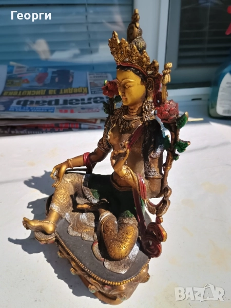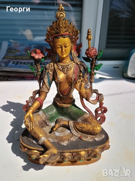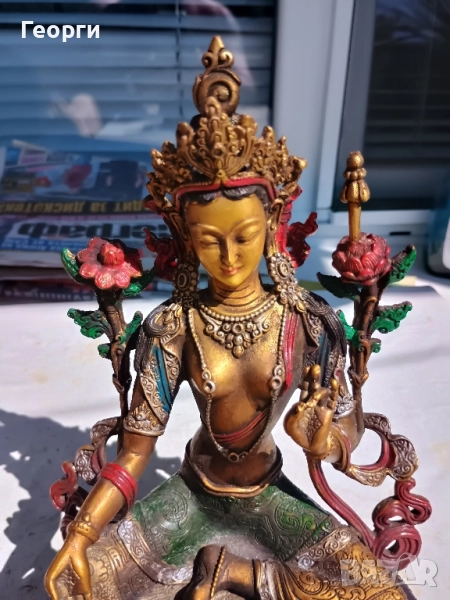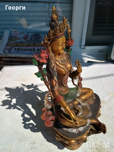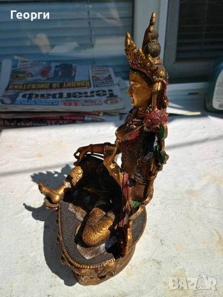 Много красива бронзова статуетка на богинята Тара.Размери 22 на 14 на 12 сантиметра.