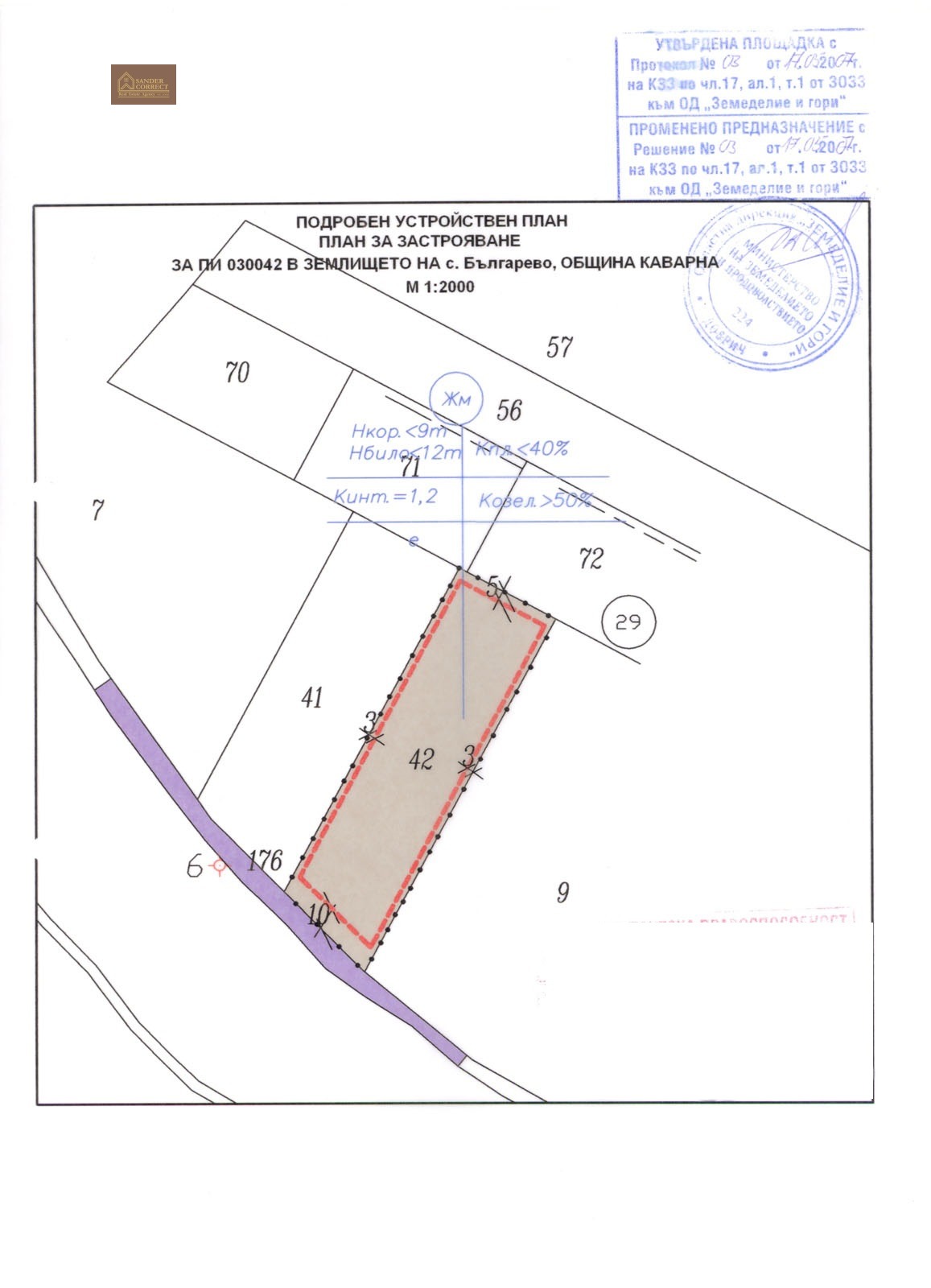 Решението за промяна на предназначението за изграждане на обект Жилищно строителство на имотите е издадено на 05.2007 и подновено през 06.2023 за нов 6 годишен срок.