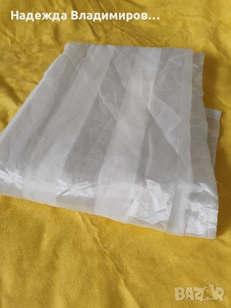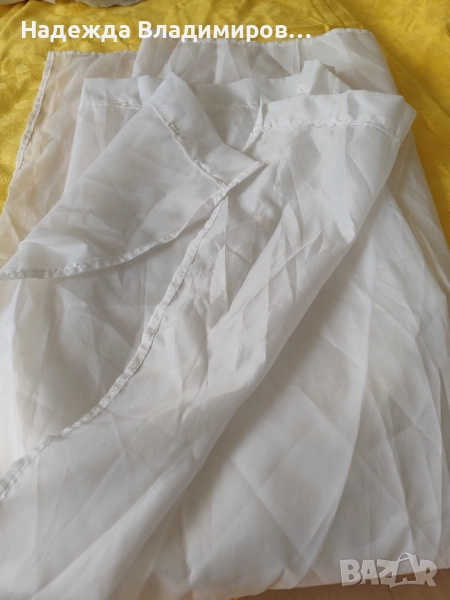 Продавам чисто нови и добре запазени пердета. Снимка 1 и 2: ново, ушито перде с клюбчета, дължина-1.25м.;ширина - 2.18м.,с бели, прозрачни и лъскави райета. - 27лева.На останалите снимки :тюлени, прозрачни, 4 броя са ушити с клюбчета, подгънати и даже с пластмасови кукички за закачане. Размер на всяко от 4-те:дължина - 2.25м.;ширина - 1.47м.-по 18 лева всяко. Инат леко издърпано конче на края, но почти не личи. Има едно единично от тюлените-ширина 1.80м.;дължина 1.57м.-18 лева.Има още два броя-снимка 6- асиметрични-ширина 1.56 м.;дължина - в късата страна. 0.47м,в дългата страна-1.54м.Стоят,като дъга.-по15 лева бройката. Снимка 7- единично, по-плътничко малко,подгънато само, с жамки за закачане, има леко петънце в единия край-ширина 1.46м.;дължина - 1.15м.-7 лева.