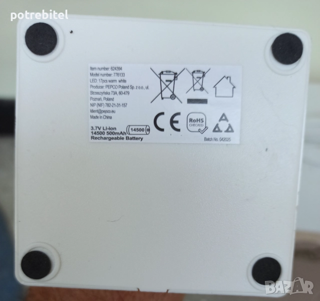 с вградена зареждаща се Li Ion батерия