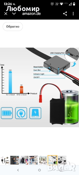 мини камерата има вградена батерия от 2000 mAh, която позволява до 20 часа работа/видеозапис. Камерата може да записва видео и по време на зареждане. Препоръчително е да свържете камерата директно към електрическата мрежа за продължително снимане.