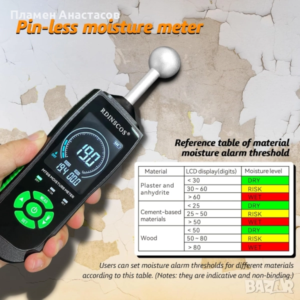 Професионален влагомер RDINSCOS – точен, безупречен и без разрушаващ контакт - НОВ