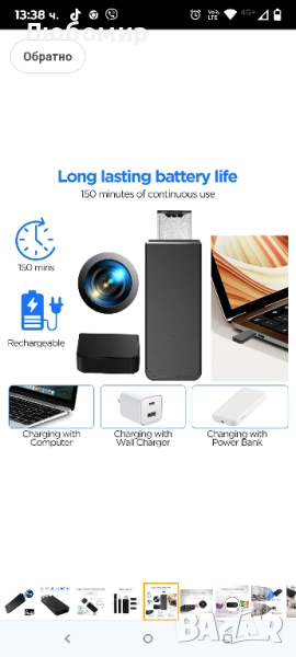 TECHNOVIEW 4K Pen Drive охранителна камера с 64GB SD карта, 1080p HD видеозапис, 150° широкоъгълен обектив, детектор на движение, живот на батерията до 200 минути - черна.Широкоъгълен обектив: Заснемайте обширни широкоъгълни гледки от 150° с тази камера с флаш памет, като гарантирате, че никога няма да пропуснете момент.