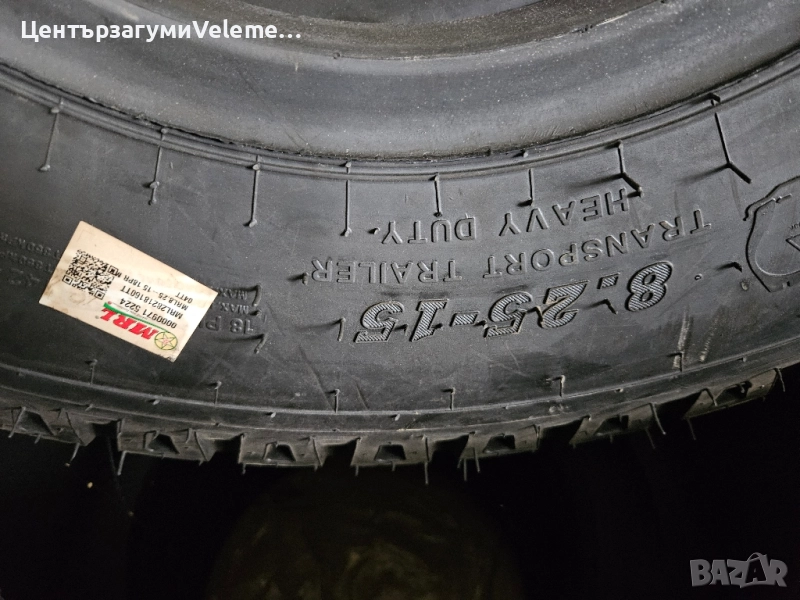 Гуми за селскостопанско ремарке 8.25-15 MRL 18 платови Център за гуми VELEMEX Гр.Асеновград Предлагаме монтаж на място Изпращаме с куриер за цялата страна