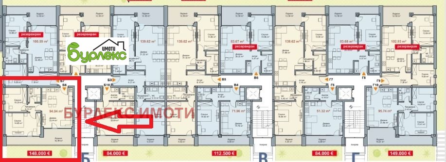 На обща площ от 94,94 м2, разпределението е както следва: