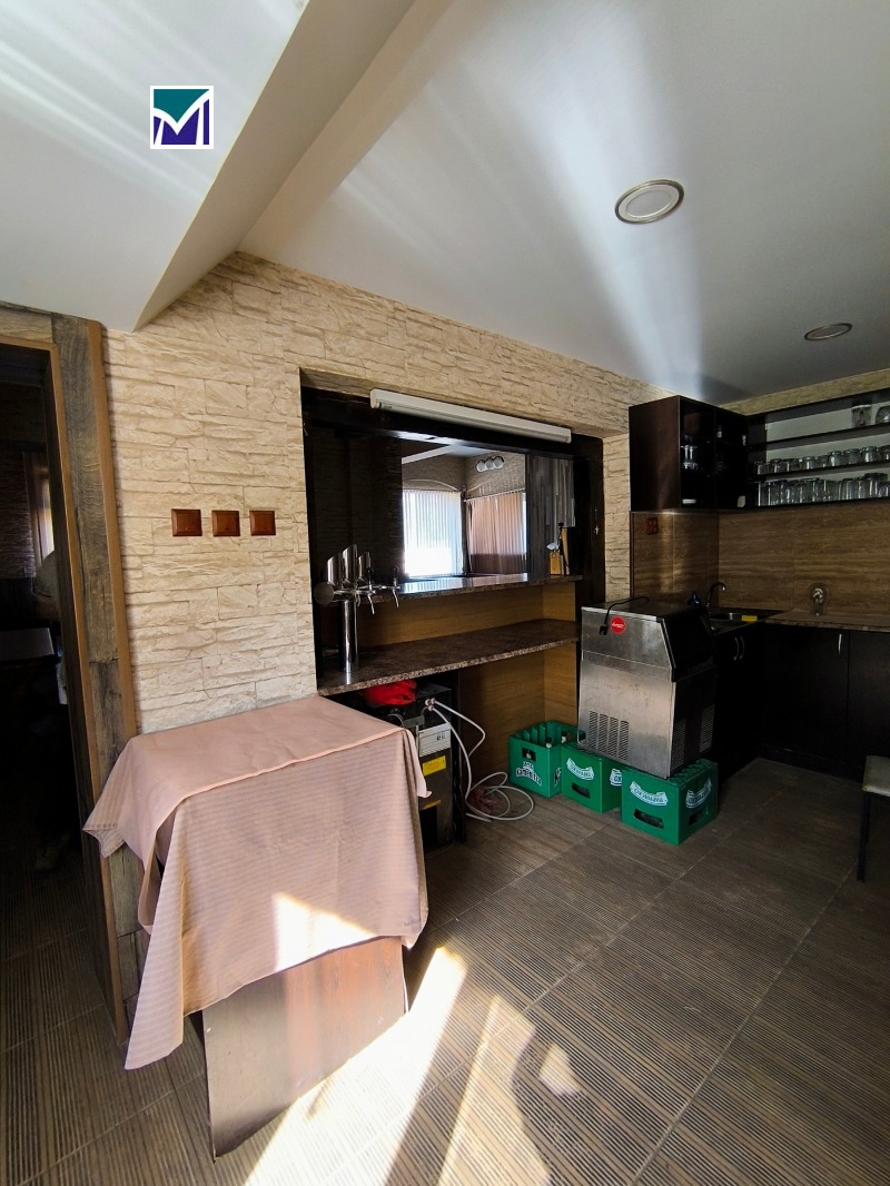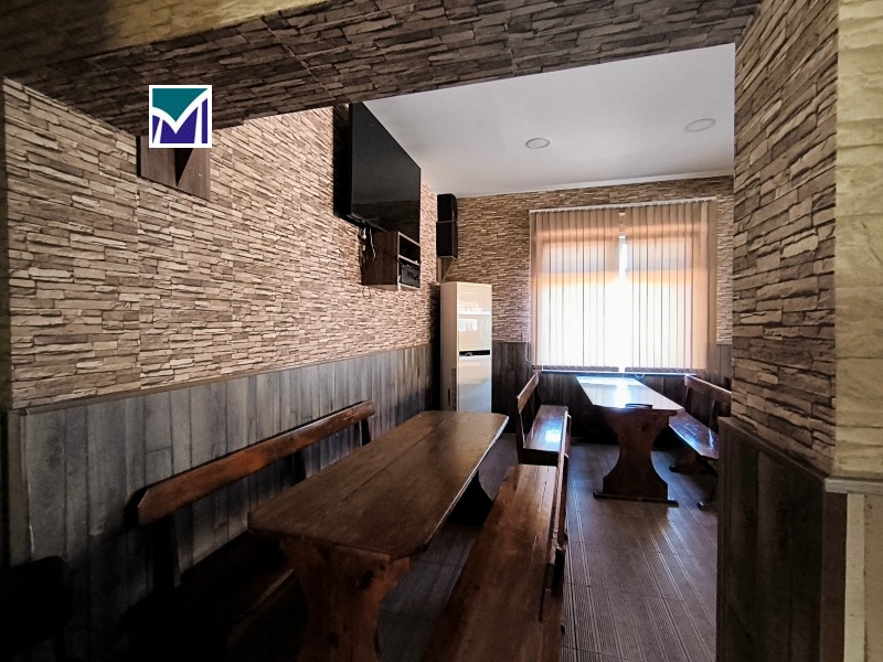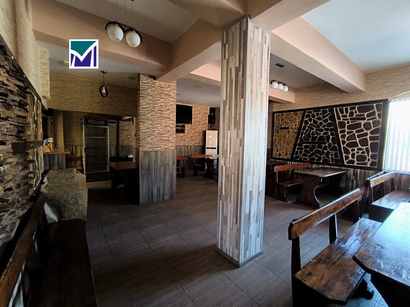 Продава се комплекс - ресторант с хранителен магазин, допълваща постройка подходяща за хотелска част и дворно място с голямо пространство за градина към ресторанта или вътрешен двор към имота. Продават се 720 кв. метра от парцела заедно с партерен етаж на основаната сграда в имота с площ 251 кв. м и с предназначение за обществено хранен. На етажа са разположени ресторант със зала за гости, бар и хухня със складови помещения, санитарен възел и магазинерска част за хранителни стоки. Ресторантът е напълно оборудван в много добро състояние и е действащ към момента, преима резервации за лични празненства, фирмени сбирки. Кухнята е с изградени въдуховоди и действаща аспирация, газови котлони 6 броя, работно място и работни маси от неръждаема стомана, фурни, хладилници. Пригоден е бар за безалкохолни и алкохолни напитки с апарат за наливна бира. Залата за клиенти е с капацитет от около 80 човека. Към ресторанта има и терса с капацитет още около 15 човека. Отоплението е с климатици. Магзината част може да бъде разработена като хранителен магазин или фермерски магазин с предлагане на фермерска продукция на лично стопанство или районни продукти. Магазинната част е с рафтове, хладилни витрини и климатик за отопление и охлаждане, разполага с трифазен ток, вода. Помещението може да се използва и за разширяване на ресторанта. Към ресторанта има допълнително 1-ви етаж от сграда с площ 100 кв. м, която може да се обособи като стаи за гости или студиа, както и приземен етаж с площ 100 кв. м, подходящо за изба, спомагателни помещения, механа, склад и други дейности, като последно приземния етаж е използван за стелажи за отглеждане на гъби.