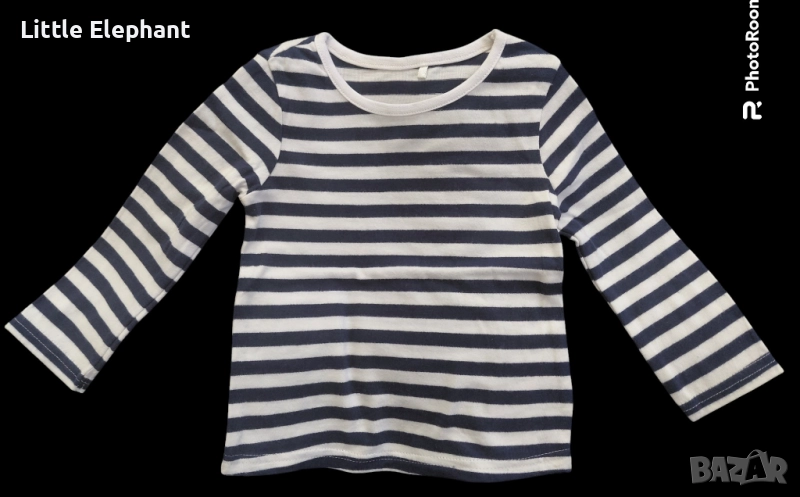 Блузка с дълъг ръкав райе тъмно синьо и бяло за момиченце на 9-12 мес,Англия/нова → Обява 51497070