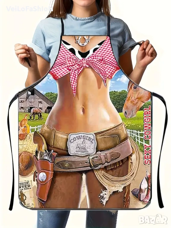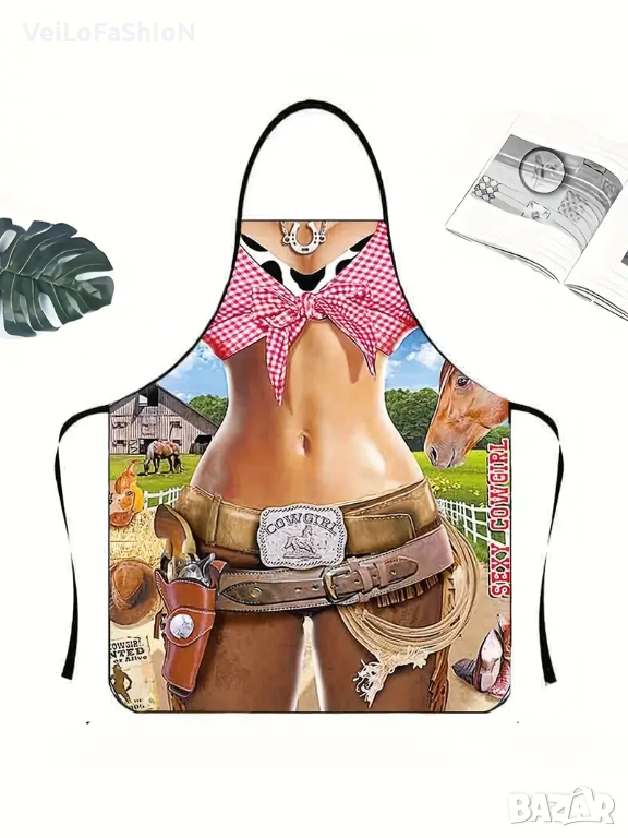 Нова дамска забавна готварска престилка Каубойка, устойчивa на вода и масло. Престилката ще ви помогне да останете чисти и сухи, когато готвите или почиствате.