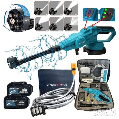 Водоструйка Безчеткова Акумулаторна 6в1 36V 8,0AH KRAFTROYAL 200bar 3500W с Дисплей Пръскачка