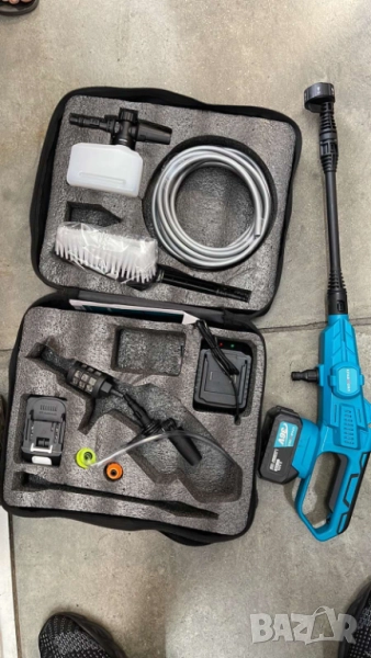 акумулаторна водоструйка с дигитален дисплей и богата окомплектовка - подходяща за миене на автомобили, тераси, велосипеди, градински мебели и други повърхности.