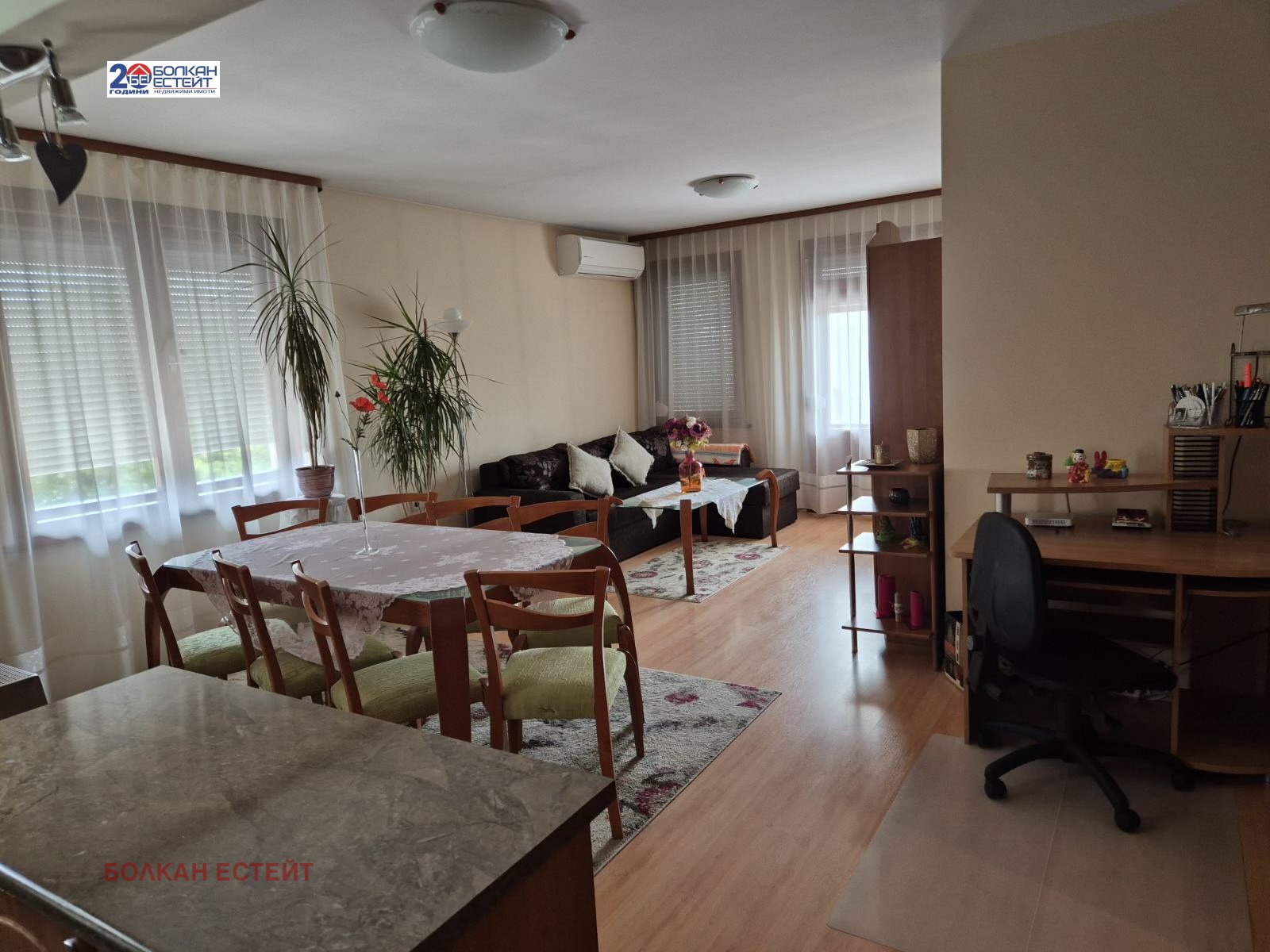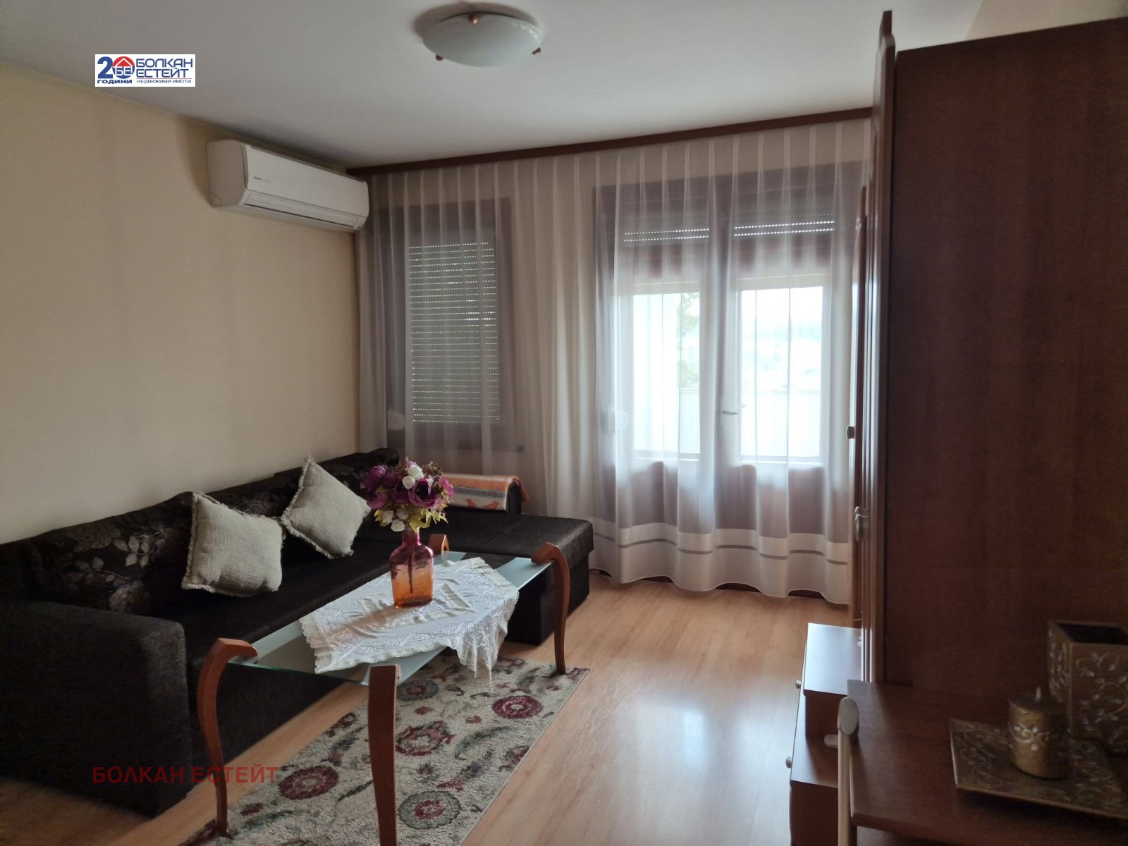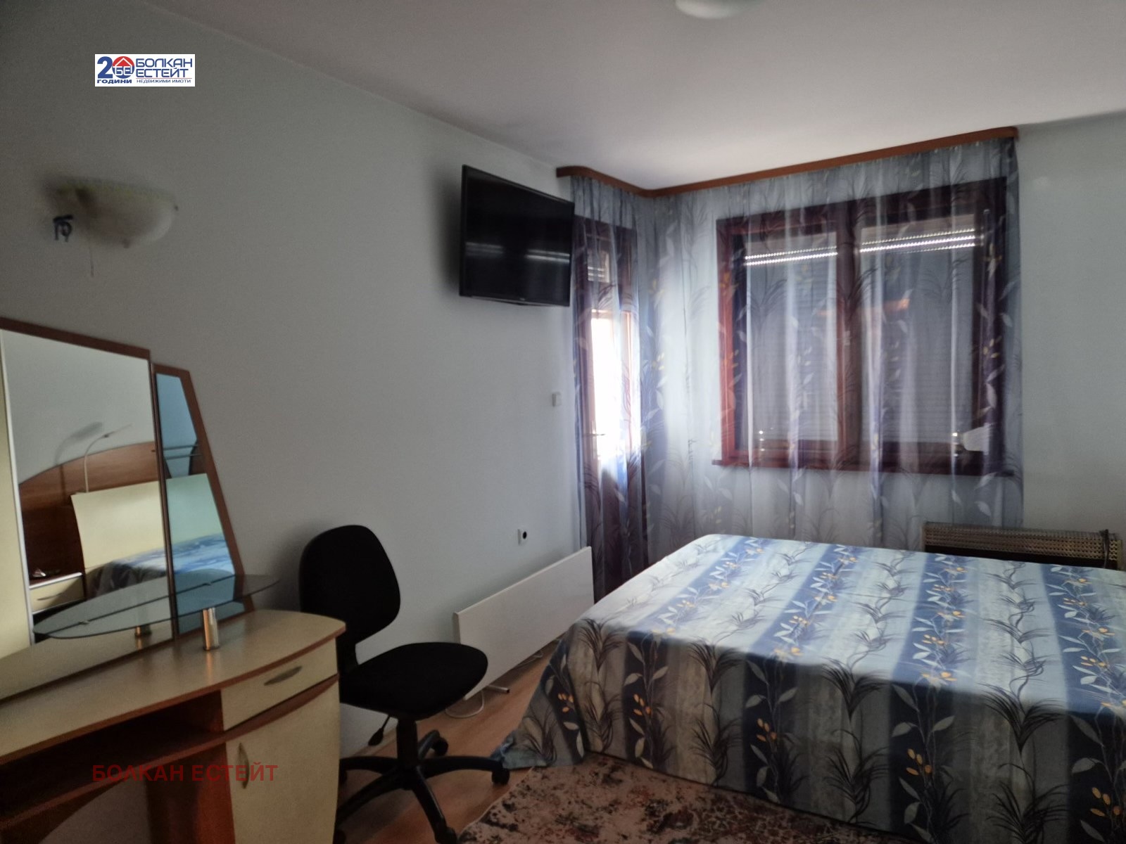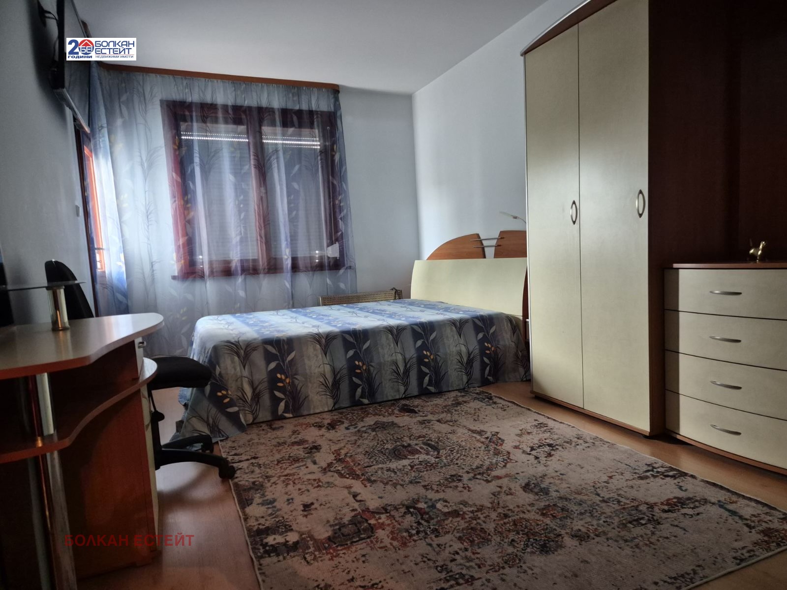 Агенция за имоти Болкан Естейт предлага под наем тристаен обзаведен апартамент в широкия център на град Велико Търново.Жилището се намира в тухлена кооперация/работещ асансьор/ ,на четвърти етаж с изложение изток-юг и се състои от просторна дневна с кухненска част,две големи спални,коридор,баня с тоалетна,мокро помещение,две тераси-едната остъклена.Апартамента се отдава напълно обзаведен с всички необходими мебели и електроуреди,климатик в дневната и конвектор в спалнята.Жилището е уютно и светло,с много добри параметри и локация-в близост до Ново Болница,училище,магазини и заведения.