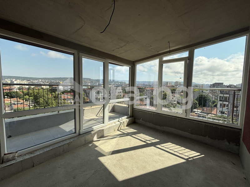 коридор, просторна всекидневна (29 кв.м) с излаз на тераса, от която се разкрива панорамна гледка към Варненския залив, две спални (всяка с тераса), баня с тоалетна, мокро помещение/килер.