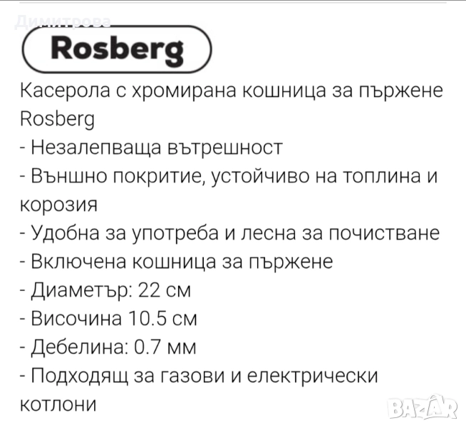 Нова касерола. Описанието е на снимката.