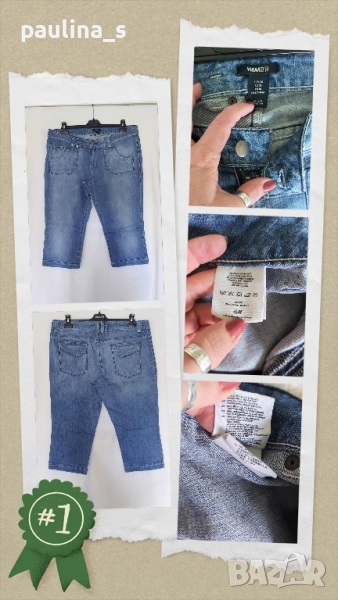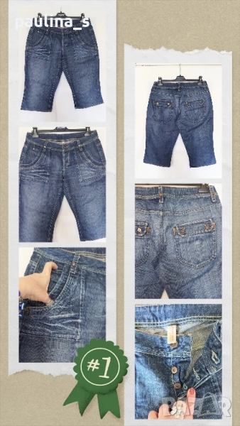 1️⃣ Колаж / L / XL - "Vero Moda". Цената е крайна 19,99лв / 10 евро. Дънкови бермуди с нормална талия, закопчават са с копчета. Джобовете външни и двойни отпред, отзад са с капаци. Платът е плътен, без еластичност. Не са нови, скъсявани са на шивач и са без дефекти и етикет.