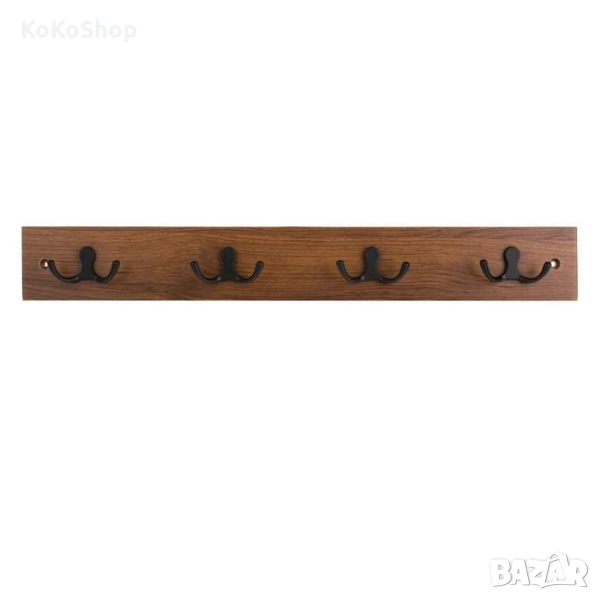 Дървена стенна закачалка,с четири двойни метални кукички.