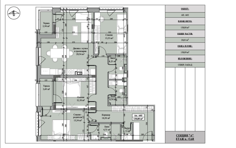 - застроена площ: 130,08 кв.м