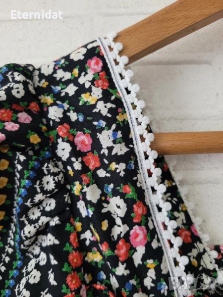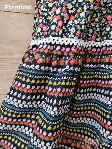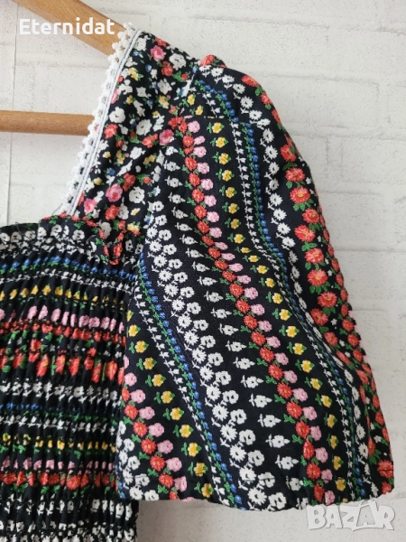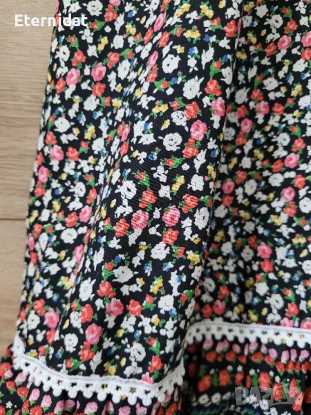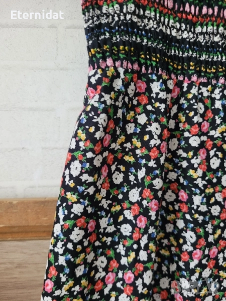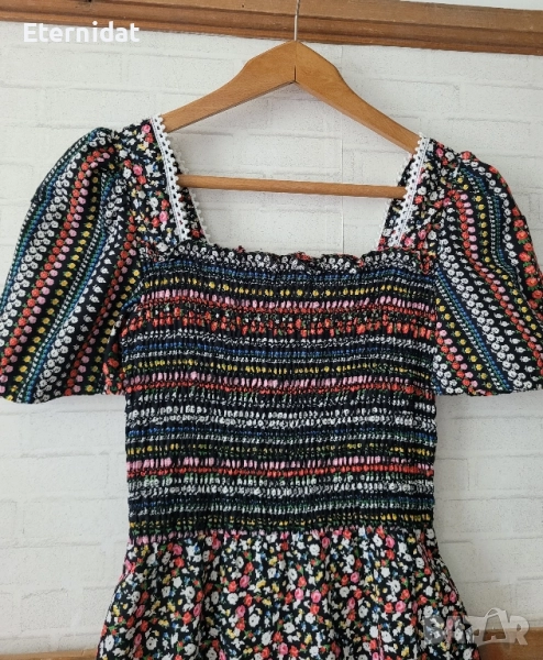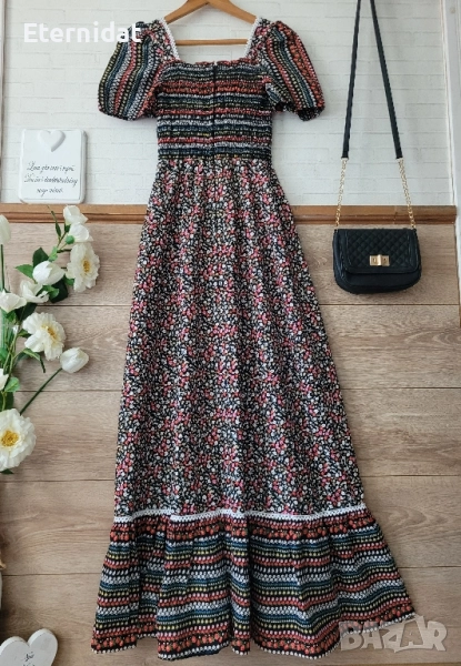 Тази рокля е просто разкош! Бохо стил от 100% висококачествен памук. Цялата обсипана в малки цветчета. Обкрайчена с дантела. Бюстието е на ластична основа с еластичност. Размер 38 (S/M). Цена 65лв