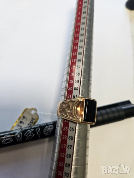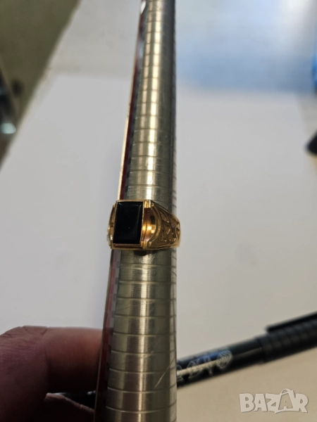 златен мъжки пръстен с черен камък,6.65гр. по 145лв грам 964лв