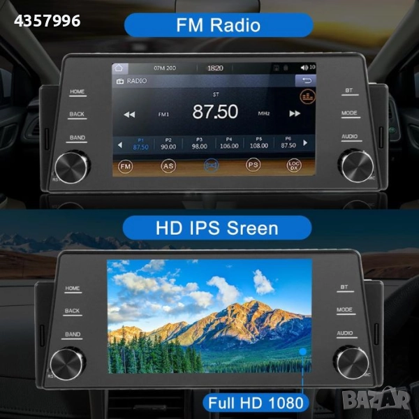 Модерна мултимедийна система за автомобил с голям сензорен дисплей и поддръжка на Wireless Apple CarPlay и Wireless Android Auto. Осигурява лесен достъп до навигация, музика, разговори и съобщения директно от екрана, без нужда от кабели.
