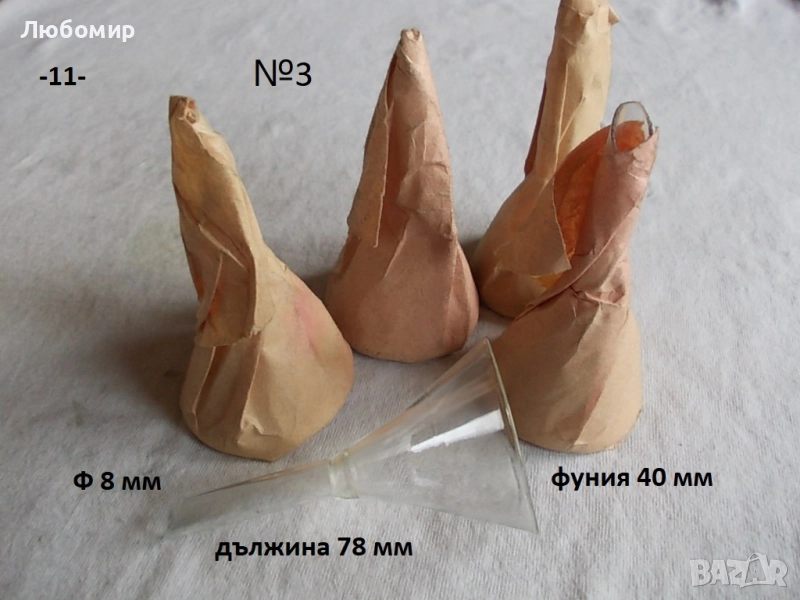 11. Малка стъклена фуния - неизползвано - 5 бр. х 3 лв.