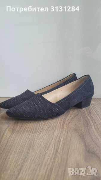 Великолепни обувки, изработени от естествен велур с малък ток, украсен с кристали.,удобни и практични за не тесни крака. А компанията Hogl е известна с много удобните си калъпи. Състояние е ново. Ток - 3 см