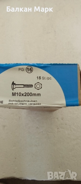 ✅ Размер: M10x200 ✅ Стандарт: DIN 603 ✅ Материал: стомана, поцинковани за защита от корозия ✅ Внос: Германия ✅ Включени: гайки към всеки болт, опаковка -15бр.