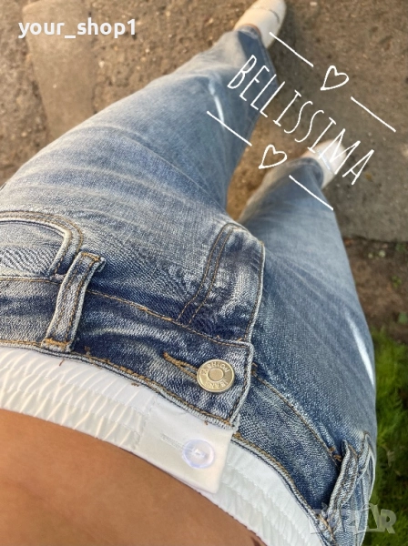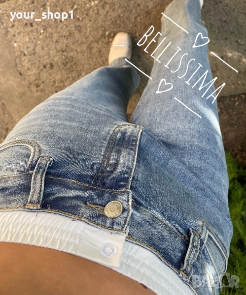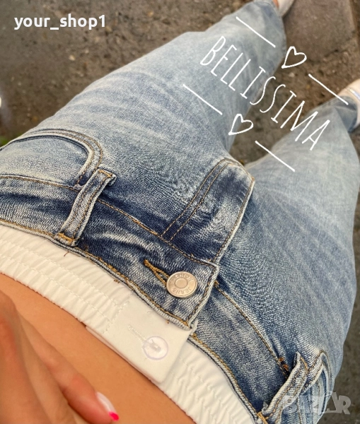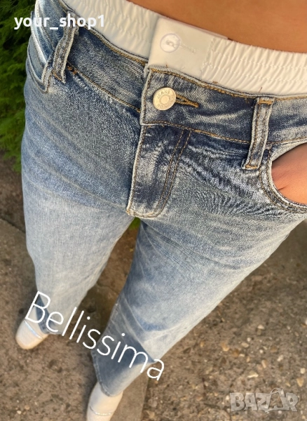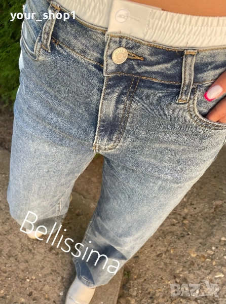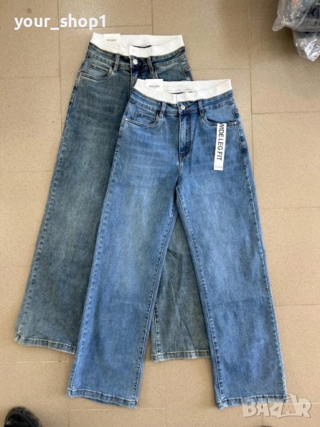 Дамски дънки с ефектен бял ластик при талията широк крачол Чарлстон → Обява 51499405