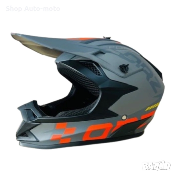 Кросова каска Automat, За мотор, Атв, Вело, S и M размер, Сив/оранжев.