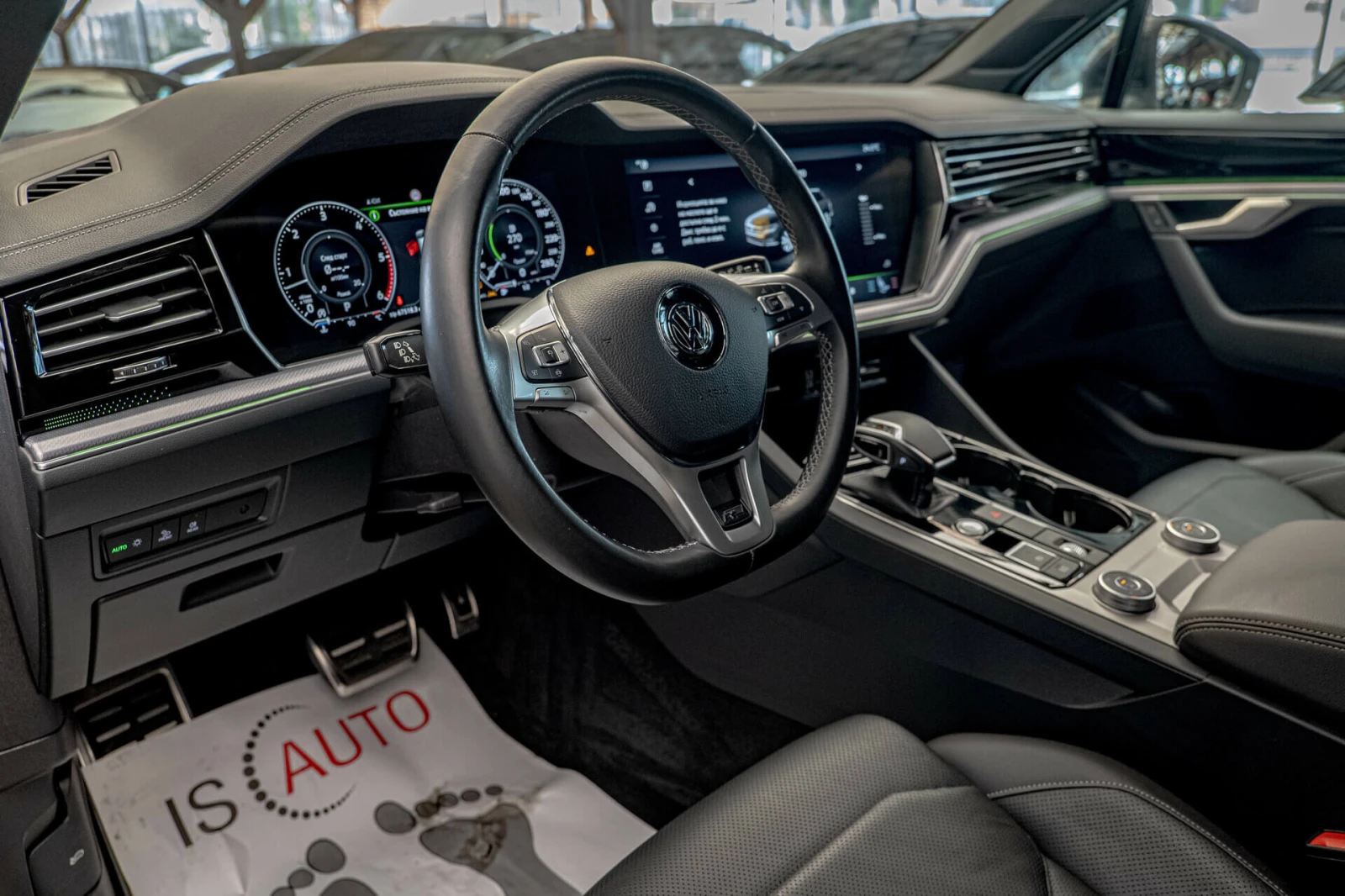 Наличен VW Touareg 4. 0TDI Специално оборудване: Пакет Ambience, комплект инструменти и крик, черен платнеен таван, сребристи анодизирани релси на покрива, Пакет за подпомагане на водача Plus, Система за подпомагане на водача: Управление на дългите светлини (Light Assist), Система за подпомагане на водача: Асистент за паркиране (Park Assist), включително камера за задно виждане, тонирано, отопляемо предно стъкло, Innovision Cockpit (цифрови инструменти и управление чрез цветен сензорен дисплей), Комфортен пакет за достъп без ключ, кожен пакет Vienna и предни седалки ErgoComfort, алуминиеви джанти 8. 5x19 (Sebring, сиви), металик боя, мобилни онлайн услуги Car-Net, цифрово радио приемане (DAB+), пакет за пушачи, система за следене на налягането в гумите (стандартни гуми и зимни гуми), тонирани задни странични стъкла и задно стъкло, предни седалки с функция за климатизация и масаж, допълнително отопление с допълнителна вентилация (дистанционно управление и таймер), допълнителни зимни гуми (необходима е информация за клиента). Допълнително оборудване: светлини за завиване и всякакви метеорологични условия / светлина за лошо време, въздушна възглавница от страната на водача/пътника, въздушната възглавница от страната на пътника може да се деактивира, оборудване R-Line, пакет оборудване: светлини + видимост, електрически външни огледала. Регулируеми, отопляеми и сгъваеми, боядисани външни огледала, хромирани лайсни на страничните прозорци, двутонен клаксон, предни и задни сензори за паркиране, прагове на вратите от неръждаема стомана с надпис, система за подпомагане на водача: избор на профил на шофиране, система за подпомагане на водача: разпознаване на пешеходци, система за подпомагане на водача: предупреждение за напускане на лентата (Lane Assist), система за подпомагане на водача: система за наблюдение на зоната (Front Assist) с аварийно спиране в града, система за подпомагане на водача: разпознаване на пътни знаци, електрически стъкла отпред и отзад, предна камера (многофункционална камера за предно стъкло), текстилни стелки за пода, автомобил без хибрид, LED задни светлини, интериор: декоративни инкрустации от полиран алуминий, филтър за купе: филтър за прах и полени с филтър с активен въглен, Isofix крепежни елементи за детски столчета на задните седалки (включително детски столчета i-Size), каросерия: 5 врати, 2-зонов климатик Climatronic, система за въздушни възглавници за главата отпред и отзад, включително странична въздушна възглавница отпред, резервоар за гориво: 90 литра, радиаторна решетка с хромирани лайсни и вертикални хромирани подпори, защита на товарния праг (неръждаема стомана), високоговорители (8), отопляем волан (кожа, R-Line) с мултифункционална функция и функция за превключване на предавките, кормилна колона (кормило) волан) механично регулируем, регулиране на височина/дължина, двигател 4. 0 литра - 310 kW V8 TDI, мултимедиен интерфейс USB (iPhone / iPod), задна светлина за мъгла, система за спешни повиквания, електрическа ръчна спирачка, педали от неръждаема стомана, R-Line, пакет R-Line, междуосие 2904 мм, комплект за ремонт на гуми (Tire Mobility Set), дисплей за следене на налягането в гумите, разделена/сгъваема и плъзгаща се задна седалка, LED фарове, предни странични въздушни възглавници, външни задни предпазни колани с обтегачи, предни предпазни колани с обтегачи, регулируеми по височина, електрически предни седалки. регулируем
