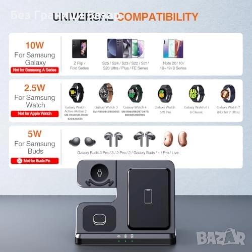 3 в 1 зарядна станция за Samsung телефон, часовник и слушалки