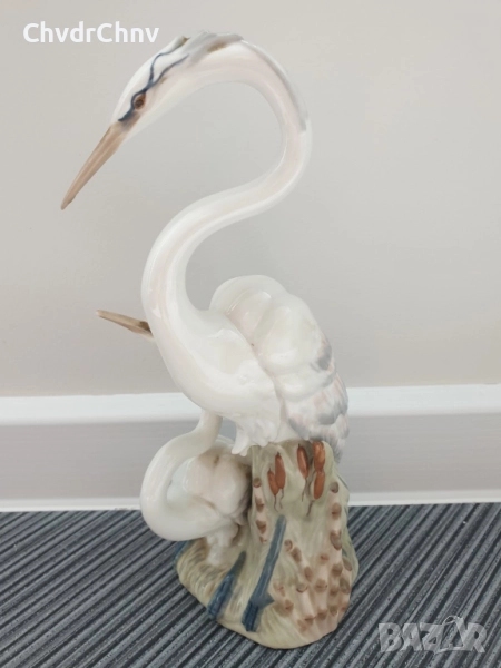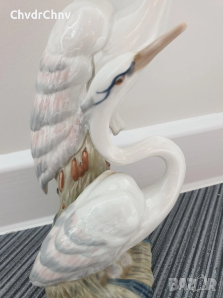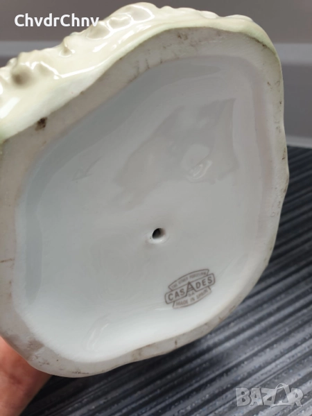 Височина 30 см, основа 11 см, тежък/плътен порцелан, ръчно оцветяване, производство 1980-те, с маркировка/печат отдолу на CASADES и надпис че е направена в Испания.