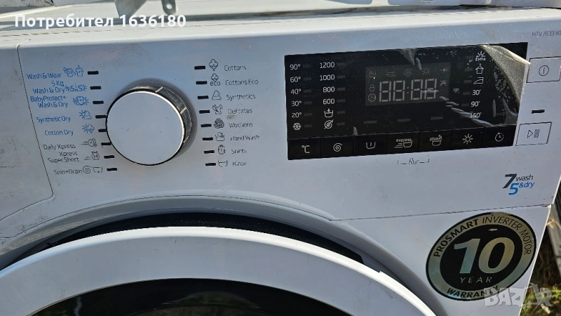 Продавам неработеща пералня със сушилня. Вероятен проблем - един от двата платки / компютъра е повреден, пералнята след престой без ползване , при включване в контакта отказа да тръгне. централният панел с джойстика и екрана е сменен с нов но не тръгва отново, сигурно е проблем по платките / компютрите. Взимане от място - Елин Пелин Не се продава на части. Марка : BEKO Модел : HTV-7633 X00 КАПАЦИТЕТ 7.0 kg КАПАЦИТЕТ НА СУШЕНЕ 5.0 kg