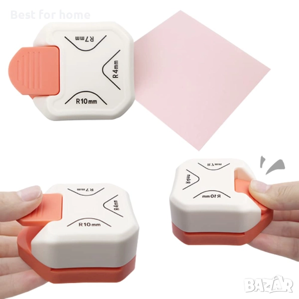 изрезки от картон, хартия за скрапбукинг, пергамент и други. Подходящ за рязане на хартия, снимки, скрапбукинг, визитки или подаръчни карти. Малкият перфоратор за заобляне на ъгли е подходящ за употреба в офис, училище, дом и фотостудио.