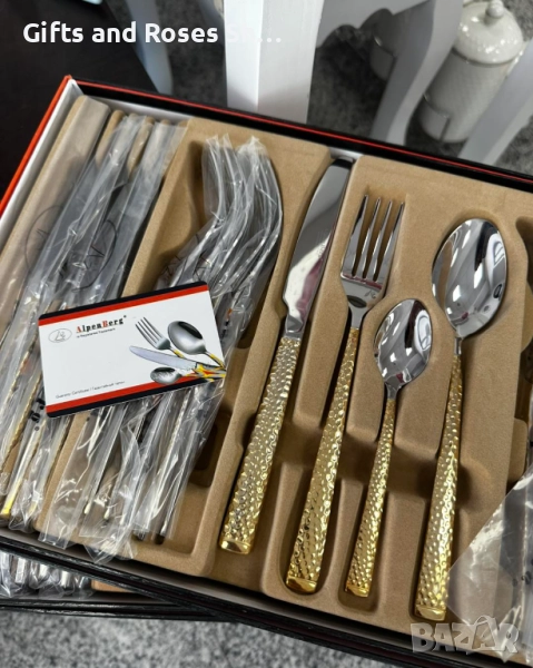 Комплект прибори за хранене със златни дръжки -  24 части, снимка 1 - Прибори за хранене, готвене и сервиране - 51501654 Комплект прибори за хранене със златни дръжки -  24 части, снимка 2 - Прибори за хранене, готвене и сервиране - 51501654 1/2