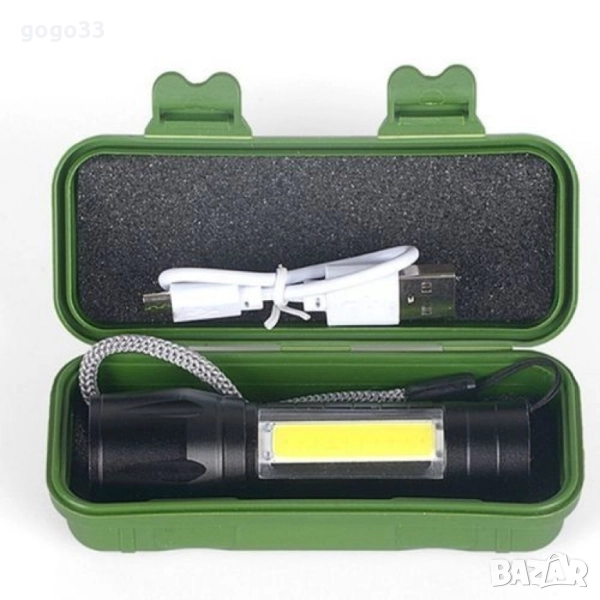 LED Джобен фенер с 3 режима, презареждаем, с USB кабел в зелена кутия FL45 Цена: 10 лева