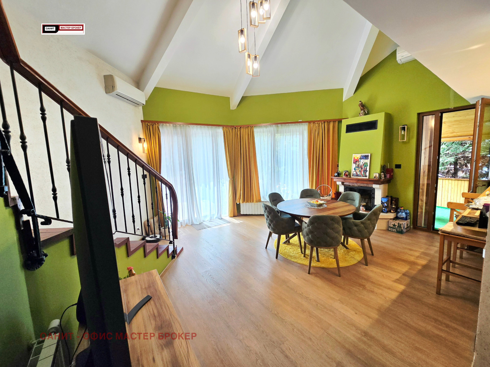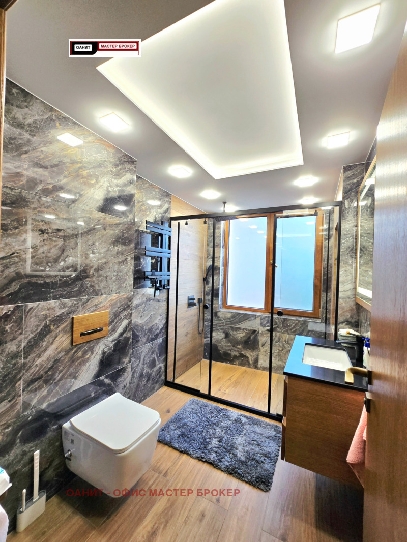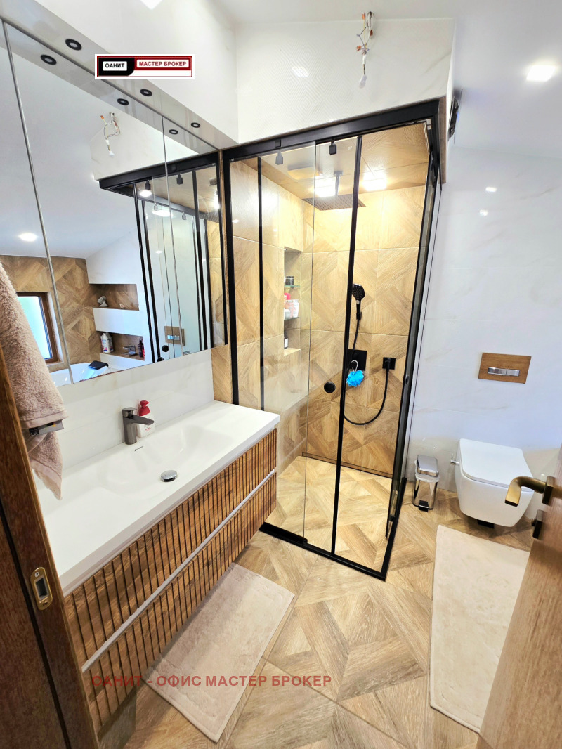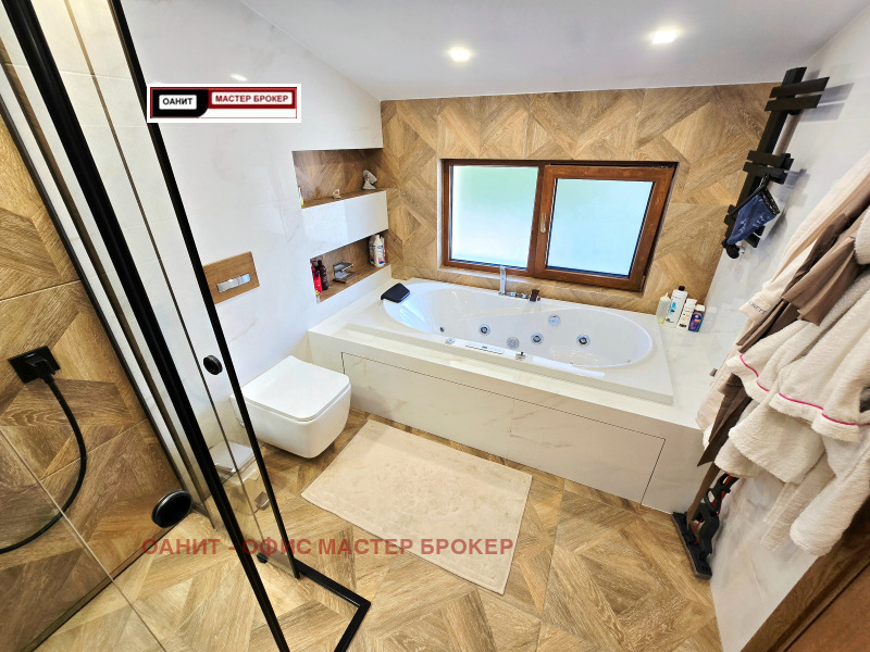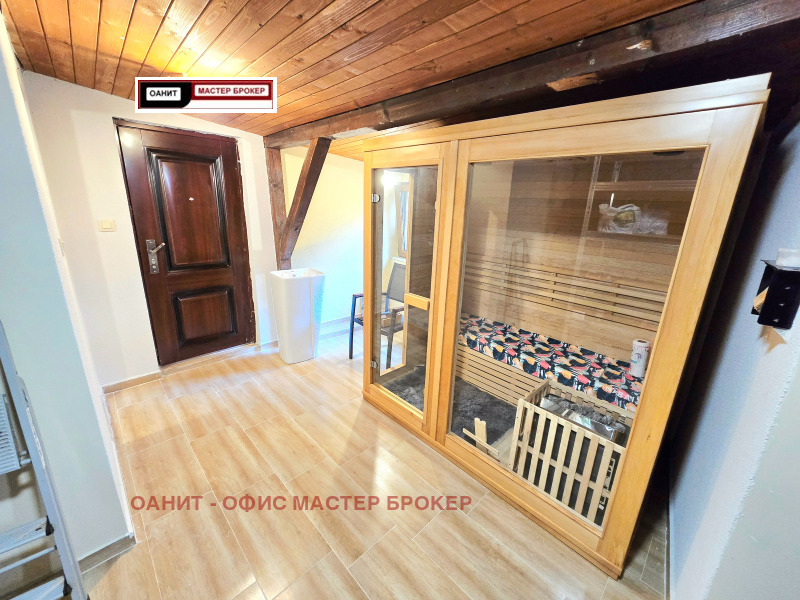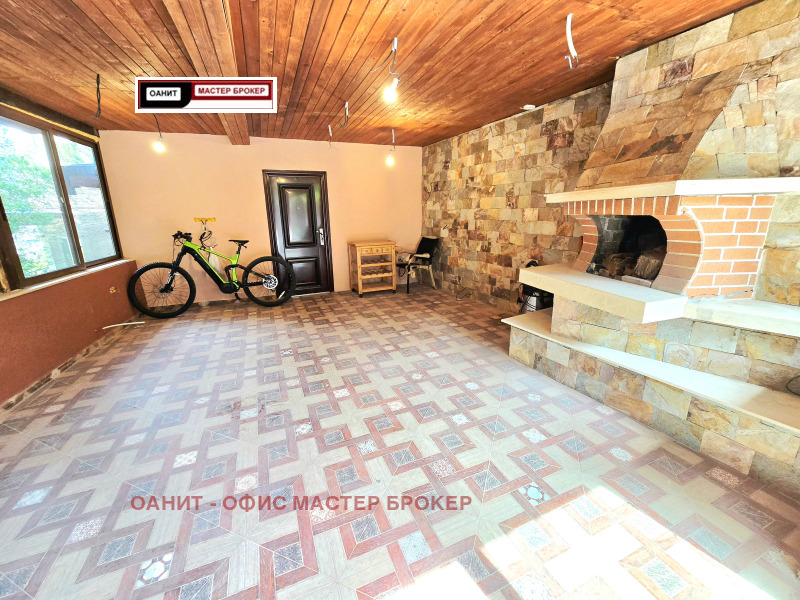 Предлагаме за продажба самостоятелна къща, след направен основен ремонт, напълно обзаведена и оборудвана с качествени мебели и електроуреди. Имотът има следното разпределение: голямо антре с коридор/с вграден трикрилен гардероб/, котелно /с чисто нов Котел на газ 'Viessmann' 32kw с вграден бойлер/, две самостоятелни спални/едната с тераса към нея/, баня с тоалетна, трапезария с кухненски бокс /с камина и излаз, както към голяма покрита тераса, така и към двора/, овални стълбища водещи към втория етаж със следното разпределение: хол /с голям ъглов диван и голям телевизор подходящ за домашно кино и др./, голяма спалня със самостоятелна баня и тоалетна към нея, също така и голяма гардеробна, перално помещение. Цялото това разпределение е върху площ от 200кв.м., отделно от него, имота разполага с барбекю със санитарен възел, склад и сауна с площ от 46кв.м, външна постройка за дърва, колелета и др.6кв.м., гараж 14в.м./пред къщата има възможност за паркиране на още две коли/, склад за инструменти, косачки и др. 6кв.м/. Изцяло сменена дограма със седем камерна с троен стъклопакет. Всички интериорни врати са от естествен дъб с магнитни брави. Отоплението е на газ/с радиатори със смарт термо глави в стаите и подово и лири в баните/, а на ток е посредством /климатици 24-ка на Фуджицу/. В двора е изградена смарт напоителна система /капково + пръскачки за целия двор, включително и за външните растения по периферията на имота/. Видеонаблюдение, СОТ , електрическа гаражна врата със смарт управление. За повече информация и огледи: 0887 235 237 Лъчезар Чонков