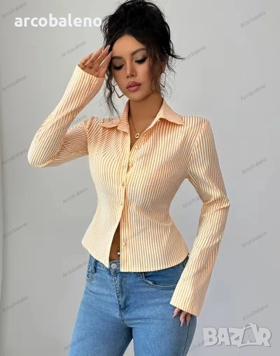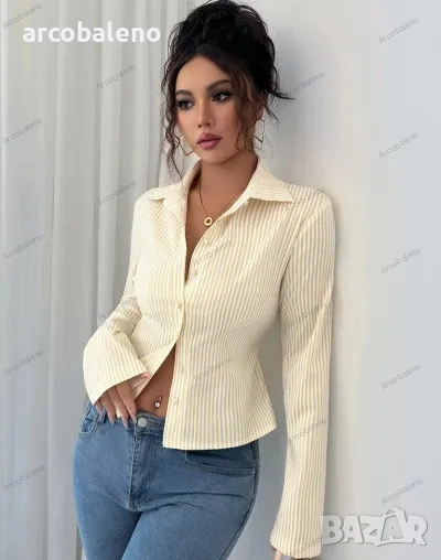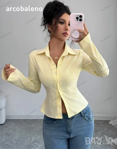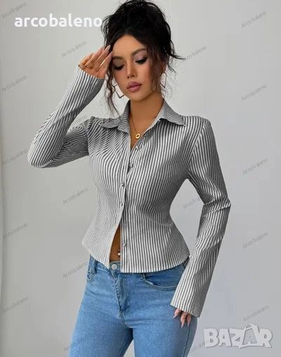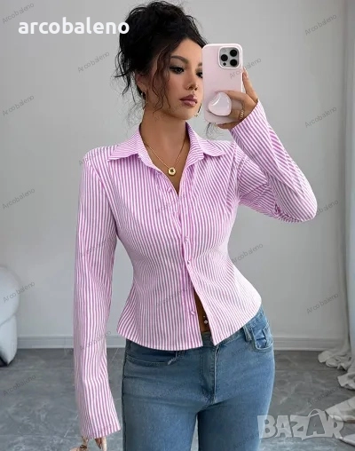 Дамска раирана риза с дълъг ръкав и копчета, 9цвята