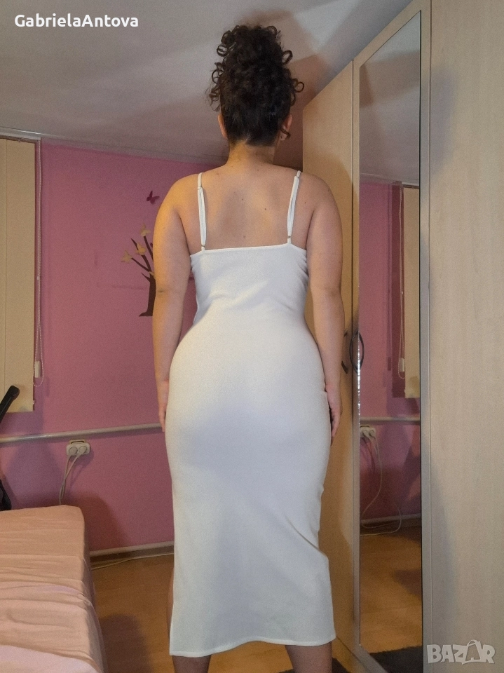Продавам бяла дълга рокля от Bershka. По тялото, с цепка. НОВА!