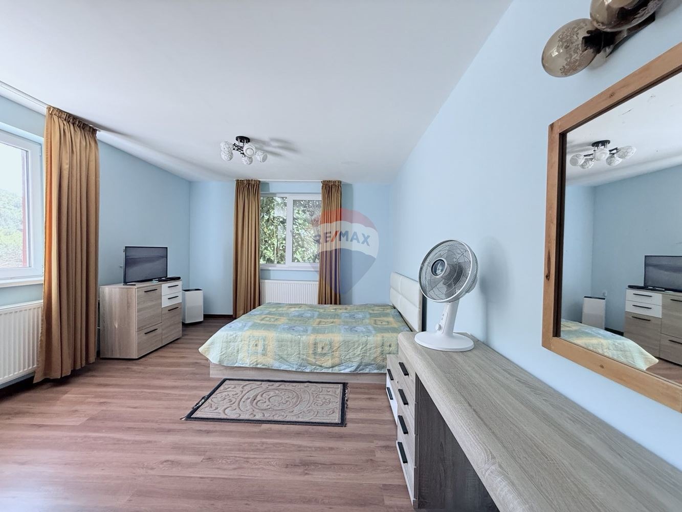 - първа спалня с площ около 21 кв.м с баня и тоалетна в едно помещение към нея;