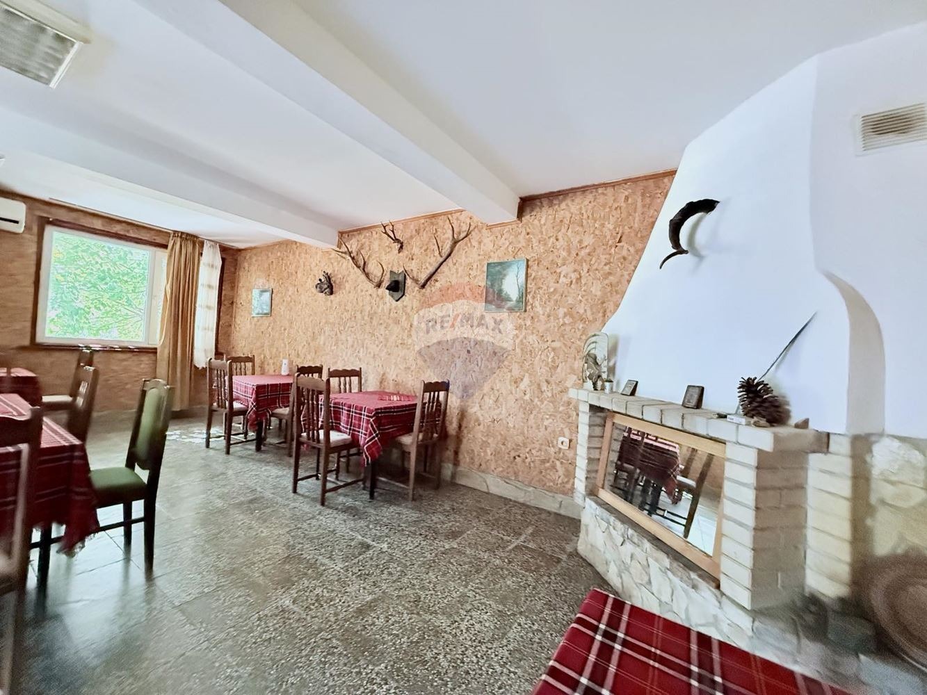 - просторна трапезария/ механа и всекидневна с камина на дърва с площ от 63 кв.м;