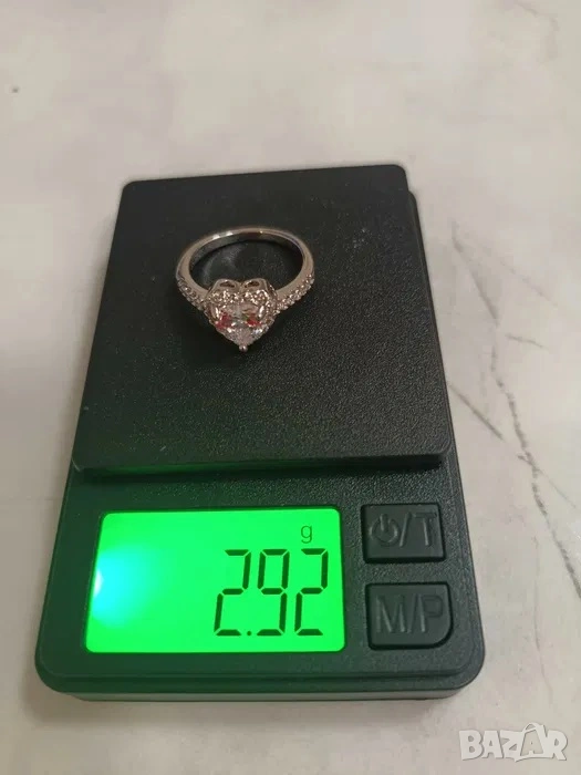 Сребърен пръстен с цирконий сърце, НОВ, размер 6, размер 7