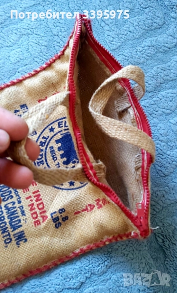 Чанта, изработена от издръжлив чул с ярък принт във винтидж стил (Elephant Brand, Индия), ще се превърне в акцент в интериора или стилна еко-чанта за пазаруване. От едната страна има надпис на английски, от другата страна има надпис на френски.