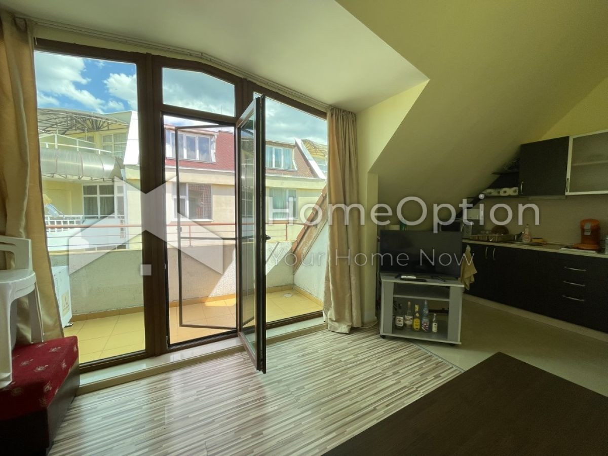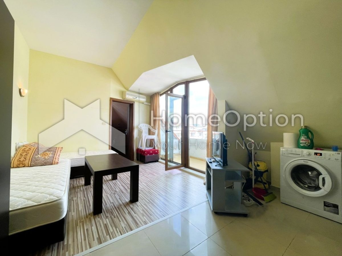 🏡 Предлагаме за продажба обзаведен двустаен апартамент, разположен в добре поддържан комплекс с ниска такса за поддръжка, Акт 16 и басейн, в квартал Чайка близо до центъра на курорта Слънчев Бряг в района на ресторант Джани . Имотът е ситуиран на пети последен етаж в сграда с асансьор. С обща площ от 58 кв.м., разпределена функционално между: