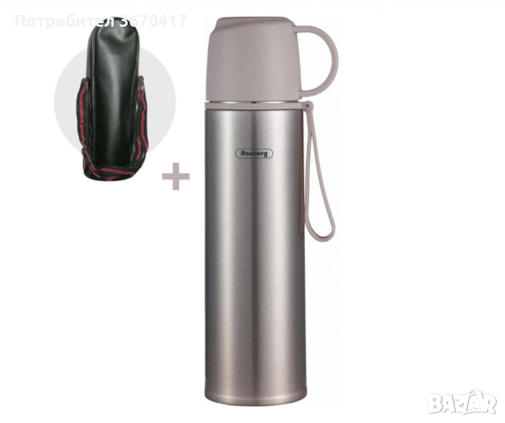 Термос с калъф Rosberg R52010FB – 500 мл., неръждаема стомана, двуслойна изолация → Обява 51505696